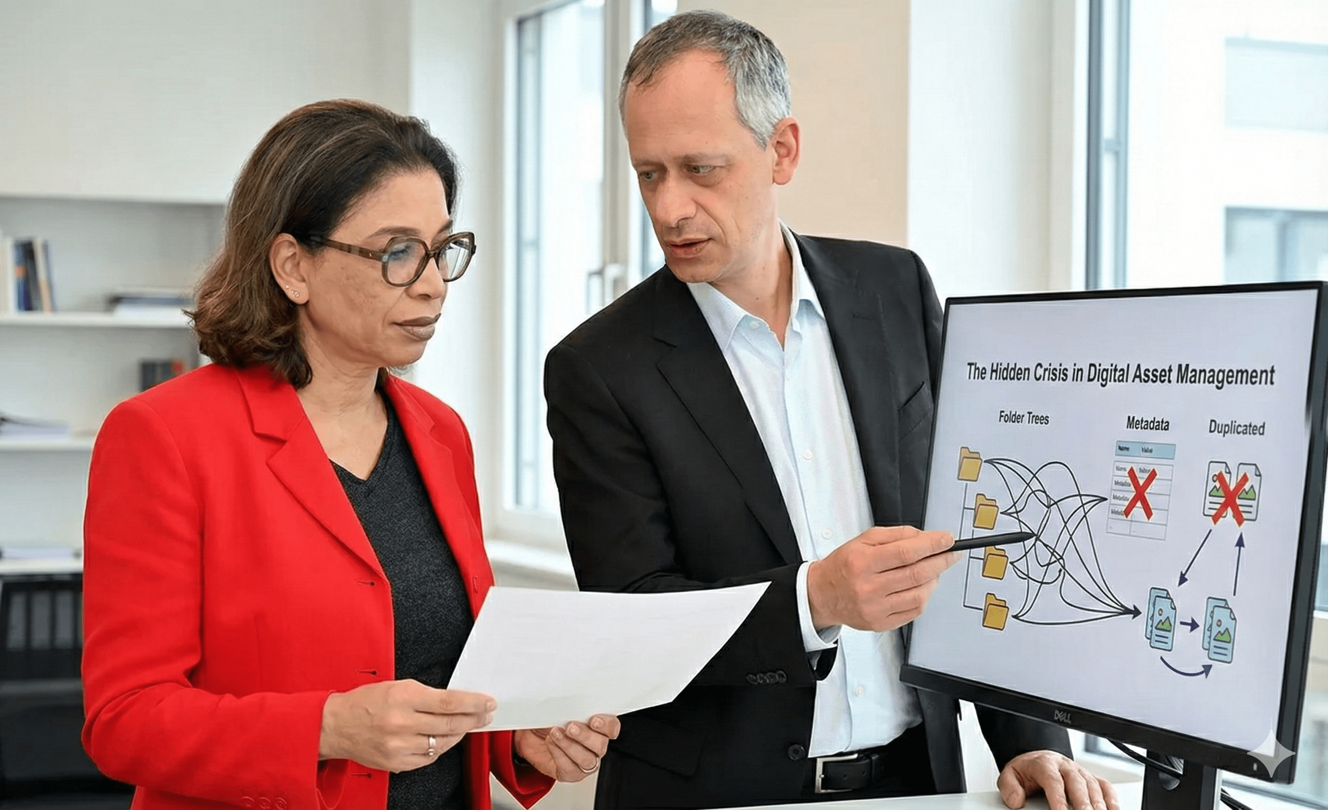 Beyond the $2.5 million price tag, failed digital asset governance creates brand inconsistency, compliance risks, and team frustration. Your expensive DAM platform becomes digital shelf-ware while employees revert to Dropbox and email chains.