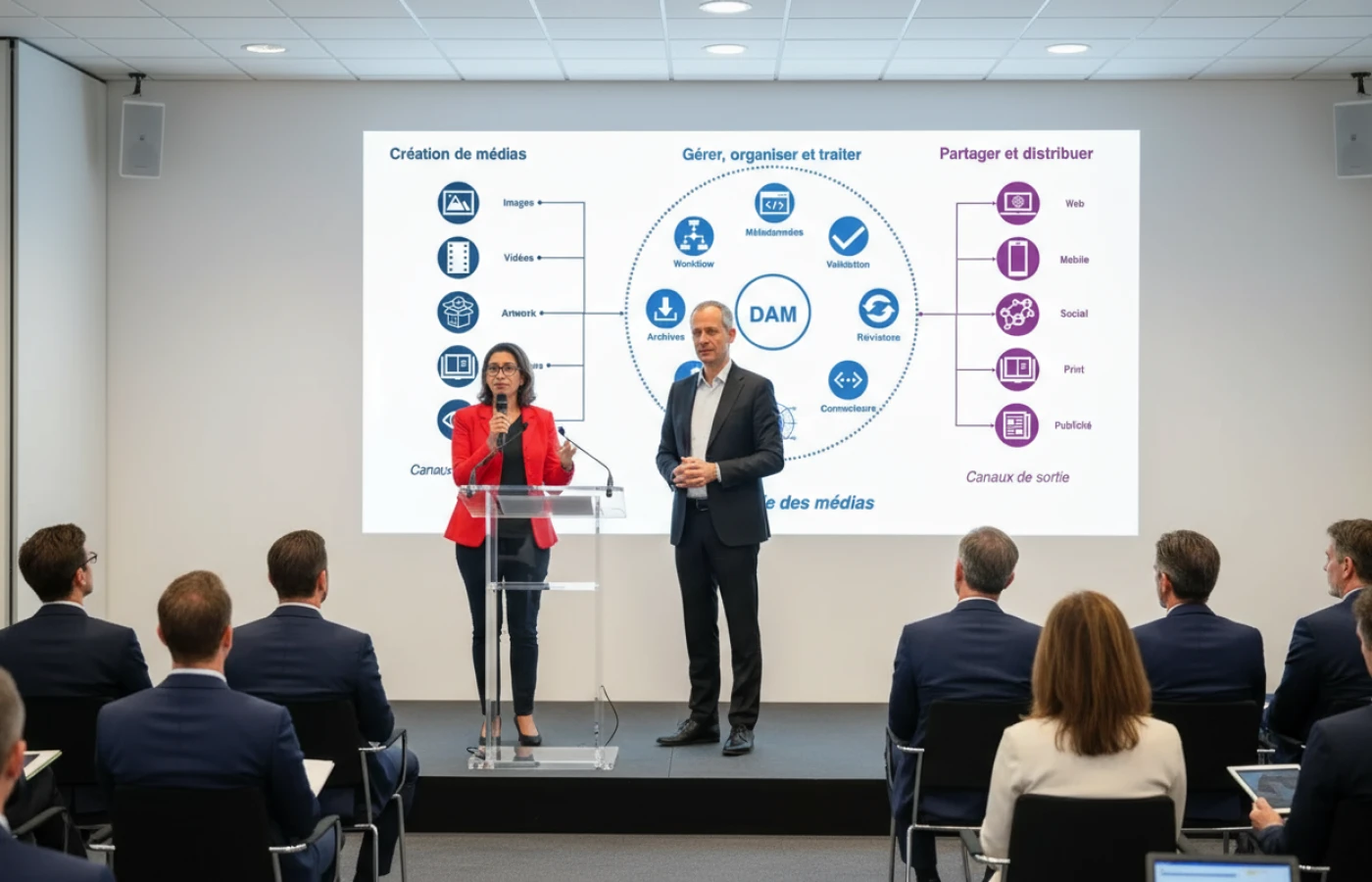 De nombreux produits s'appuient sur des supports riches (images, vidéos, manuels d'utilisation, schémas) pour apporter de la valeur aux clients. Le PIM gère les données des produits, tandis que le DAM gère les actifs numériques. Un consultant définit la manière dont ces systèmes fonctionnent ensemble :